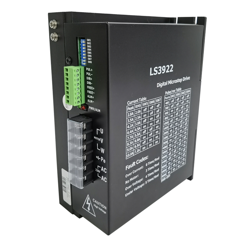 LS3922 is a new digital three-phase stepping motor driver of changzhou finer motor co.,ltd, which uses the latest 32-bit DSP technology and mainly drives 86, 110 and 130 three-phase hybrid stepping motors. Micro-steps are subdivided into 16 kinds, and the maximum number of steps is 30,000 steps/revolution;